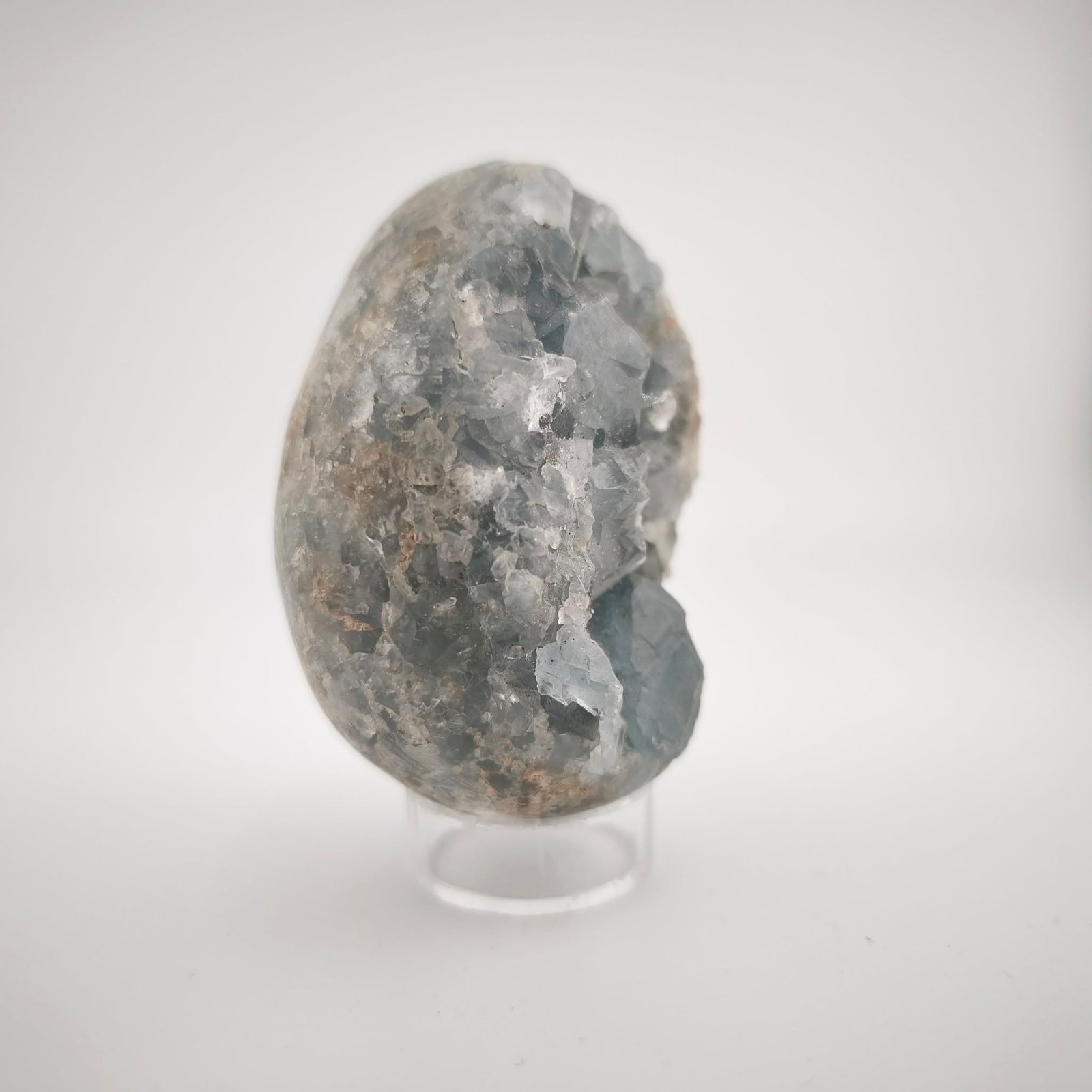 ⚠️ Prudence : La Célestine est une pierre très tendre et photosensible. Évitez de l’exposer trop longtemps à la lumière directe du soleil, car elle risquerait de perdre sa belle couleur bleutée.