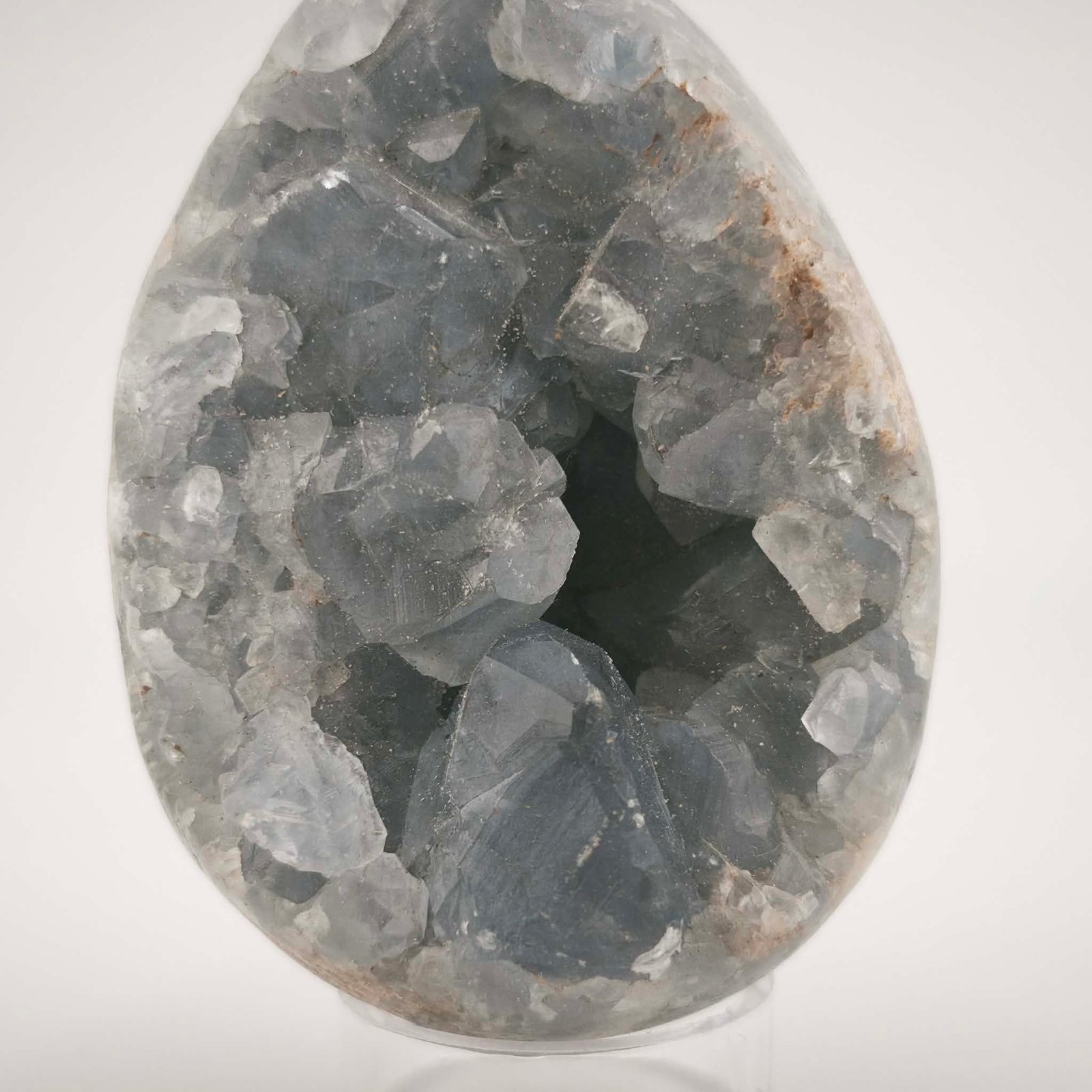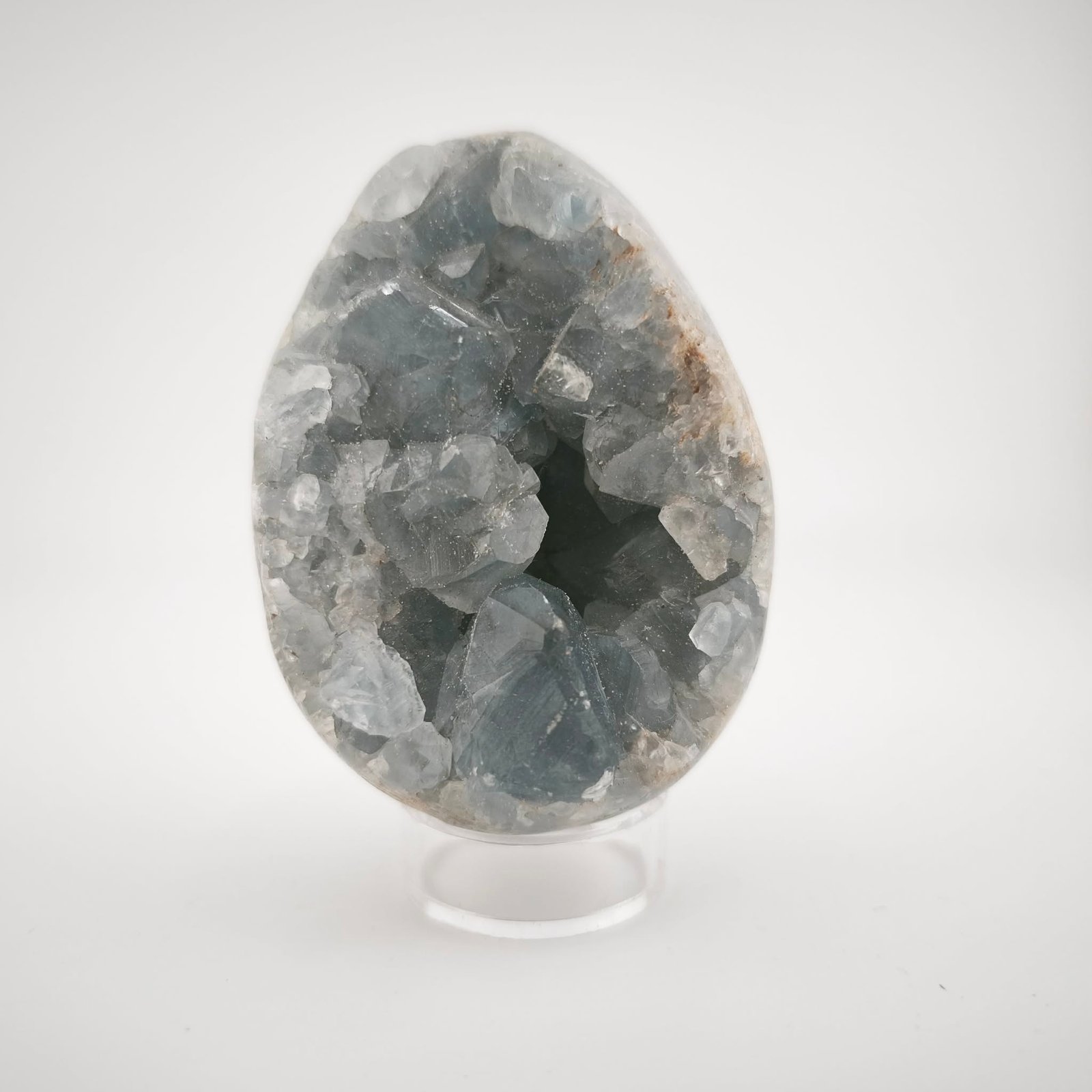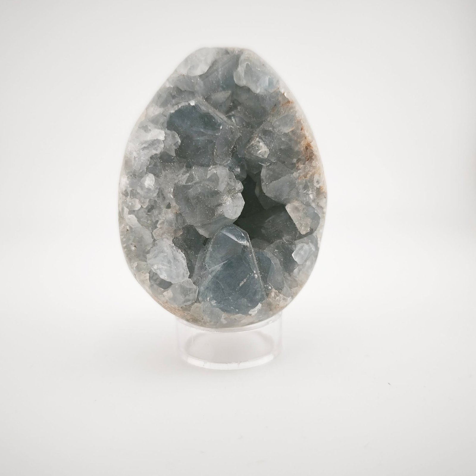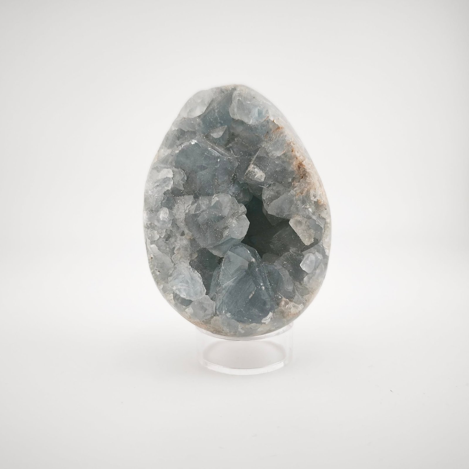 Laissez-vous envoûter par la pureté de cet Œuf en Célestine (ou Célestite), aux nuances bleu poudré et aux reflets cristallins étincelants.